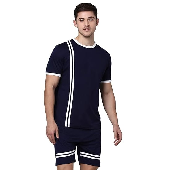 - Material Type: Polyester; Material Composition: 100% Polyester; Sleeve Type: Half Sleeve; Pattern Type: Striped; Occasion Type: Sports